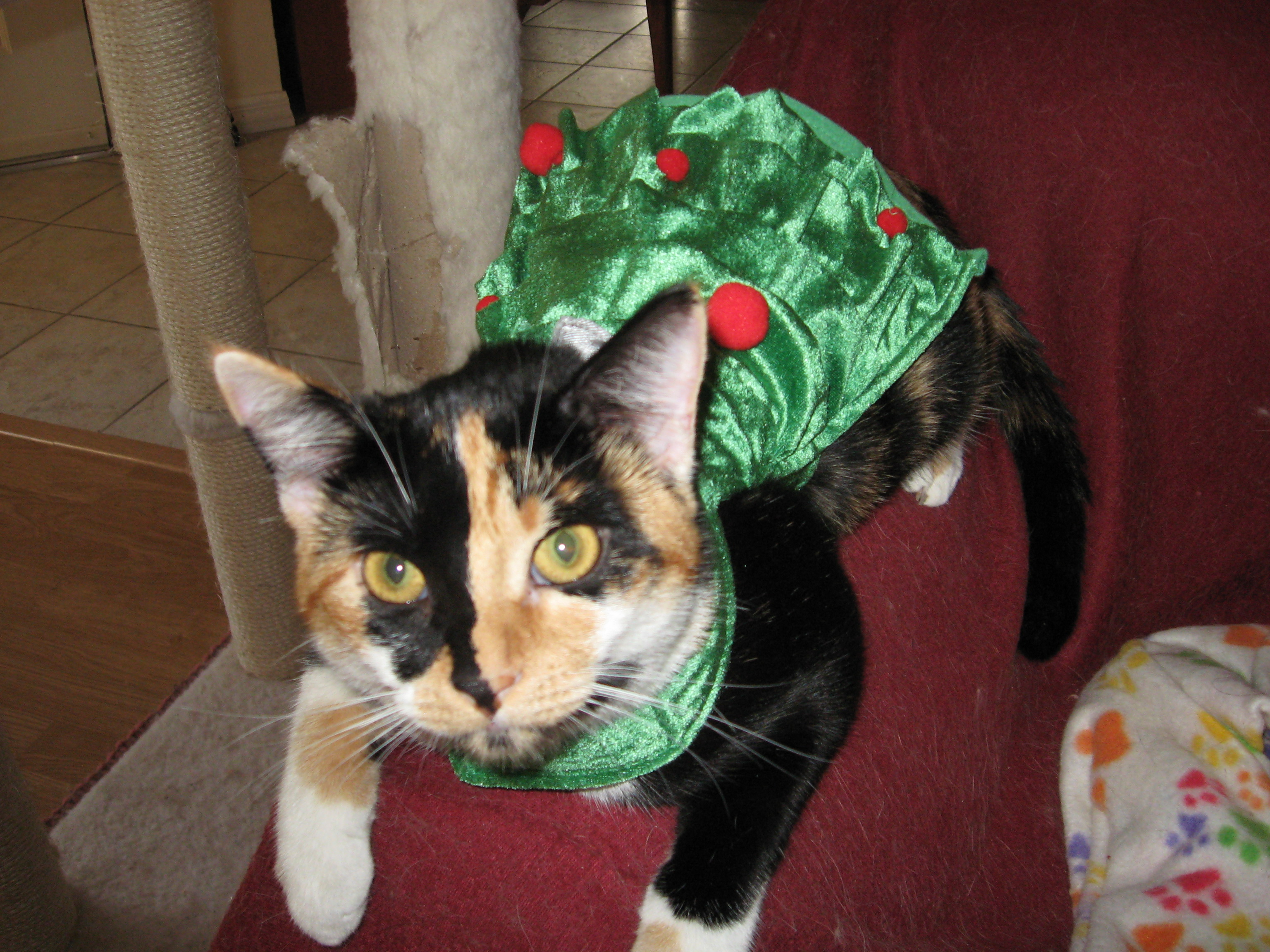 What kind of catnip did you put in that Hello Kitty catnip blanket? The postman left the package by our garage door, and before we could get down there to it, all of our outside cats had torn open the padded envelope and were working on the ziploc with the blanket inside. We managed to get to it before they got the blanket out or did any damage to it, and brought it inside in hopes of saving it for Christmas. As soon as we did, our inside cats attacked it. When we took it away, they attacked us. Then they continued to climb and wallow on the counter where we had first laid the blanket down. And then they began attacking the Christmas card that had been inside the ziploc with the blanket. Attached is a photo of what is left of the card. We finally hid the blanket in the basement stairwell and now they are trying to break through the basement door. That isn’t catnip–that’s kitty heroin!